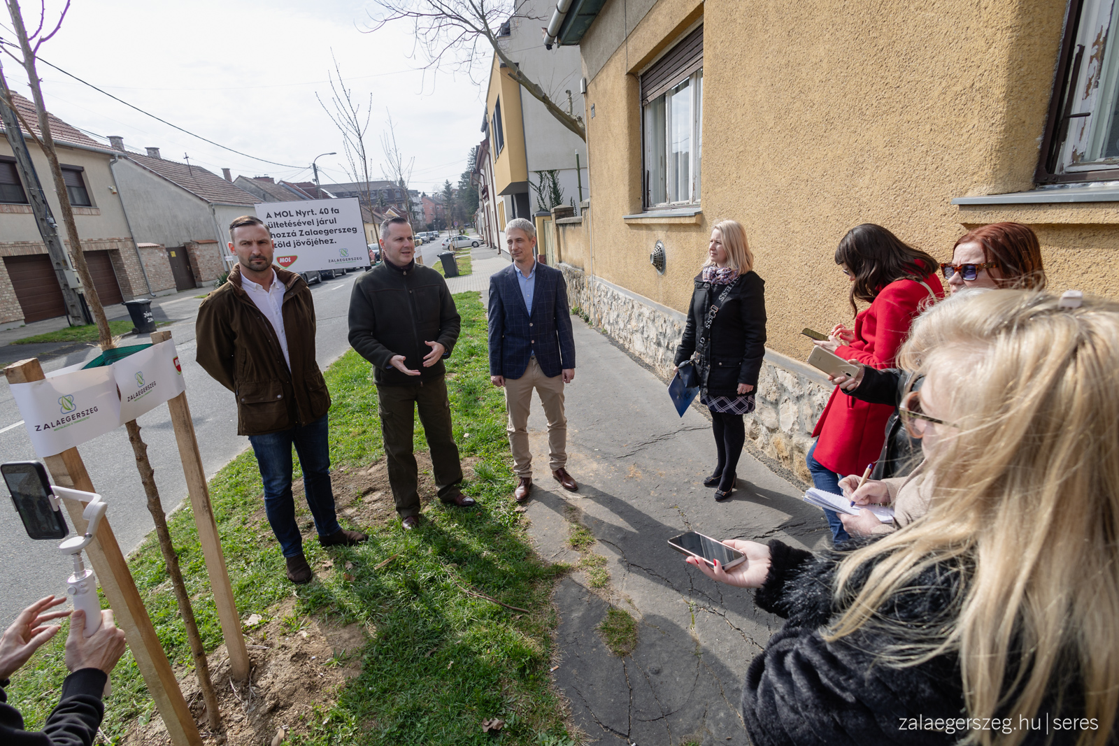 Sajtótájékoztató - A zalaegerszegi faültetési program részeként újabb 40 facsemetét ültettek - a MOL jóvoltából - a Jókai utcában (2024.03.05.) - Fotó: Seres Péter