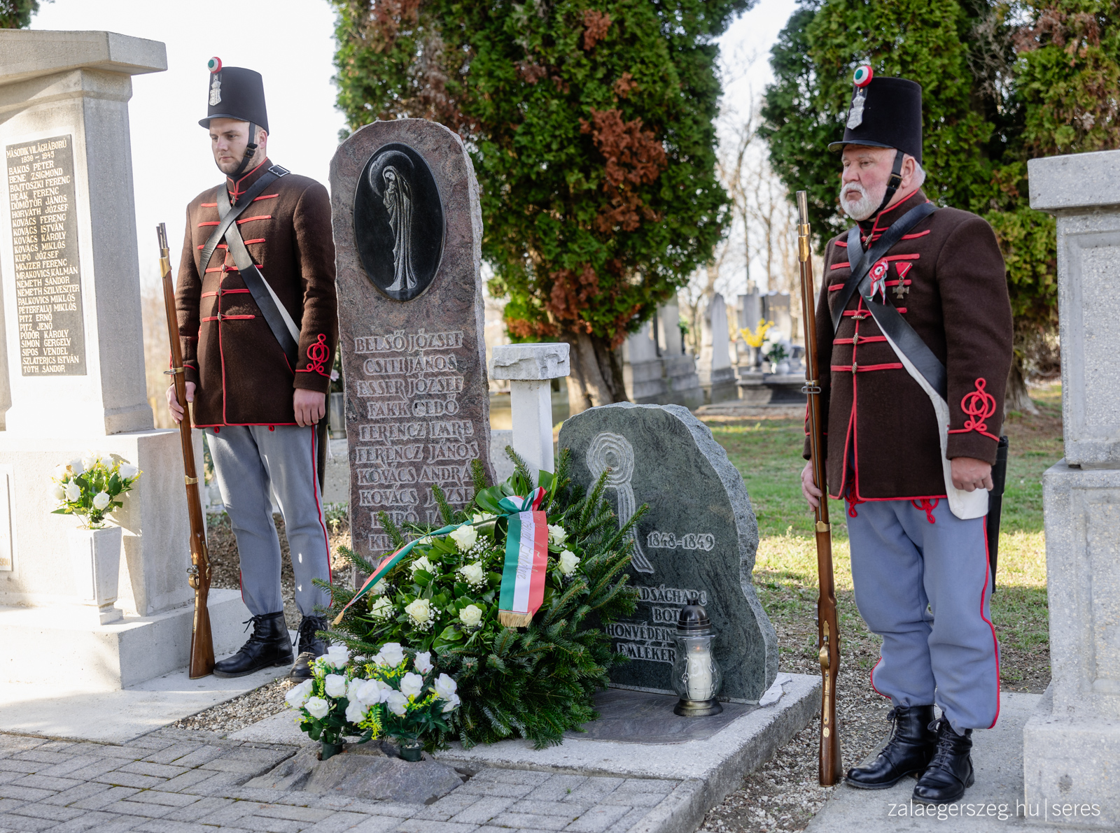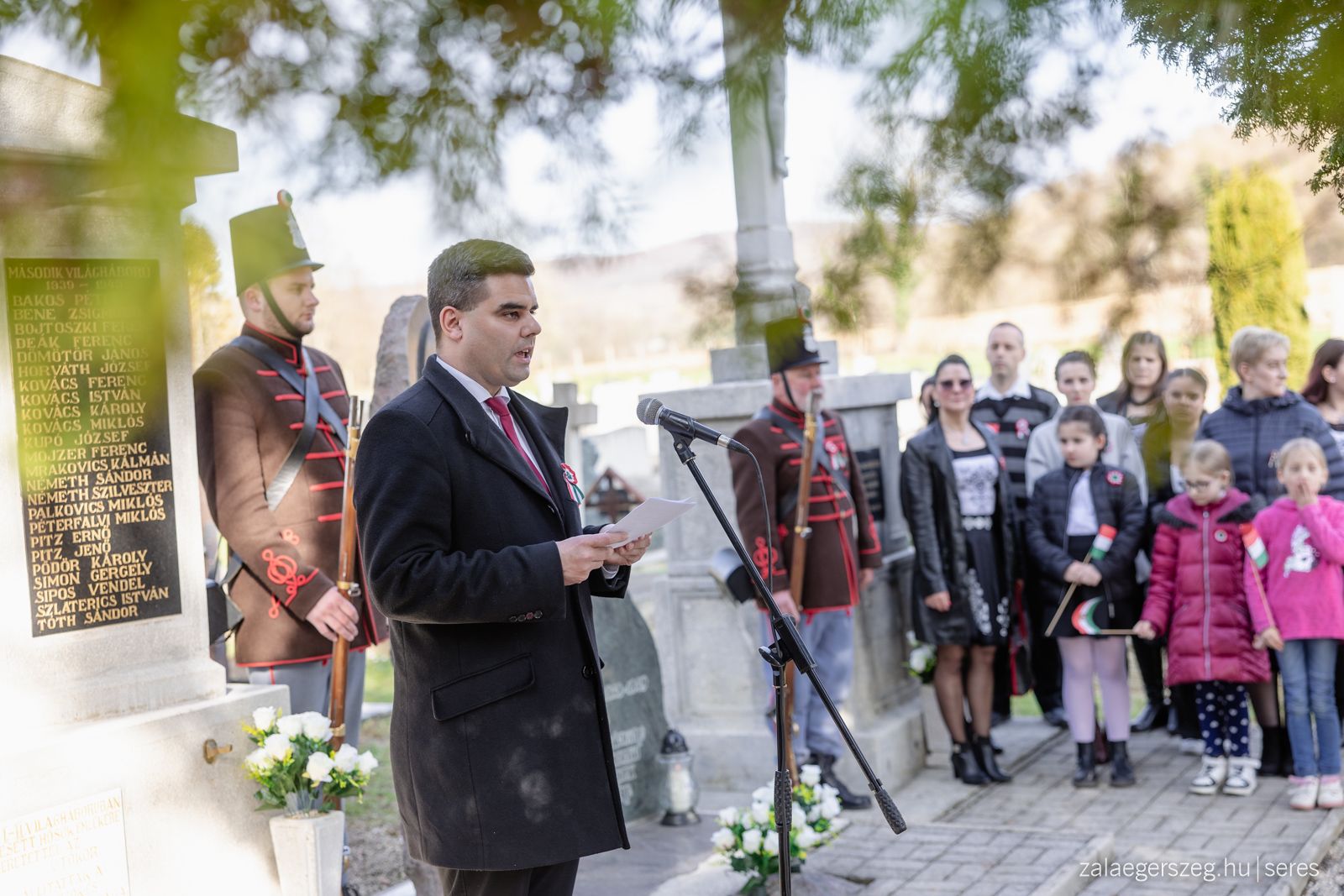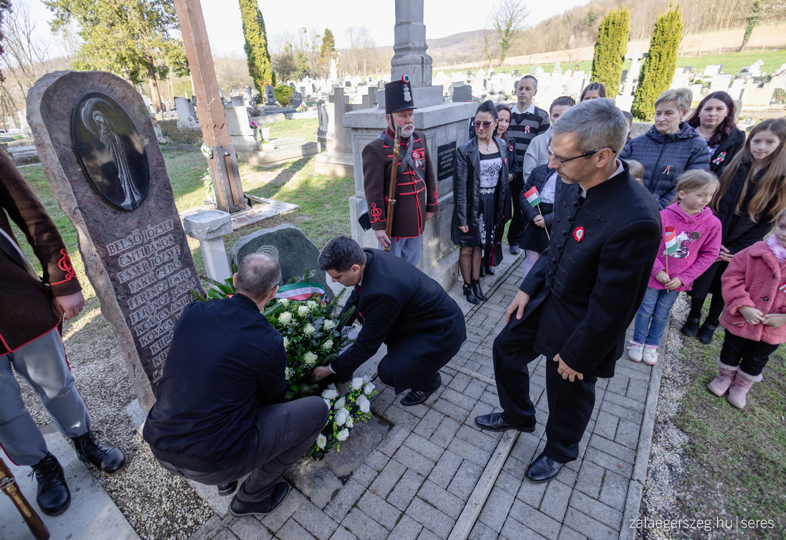 Megemlékezés a botfai temetőben a nemzeti ünnep alkalmából az Összefogás Botfáért Egyesület szervezésében (Botfai temetői hősi emlékmű, 2024.03.15.) - Fotó: Seres Péter